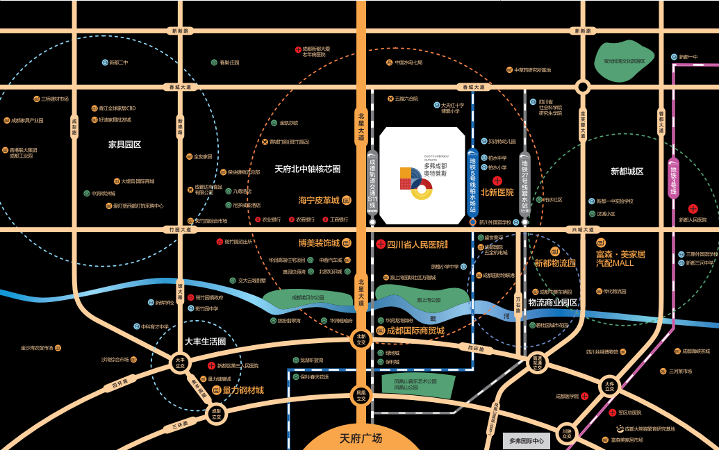 Chengdu Outlets is an annual masterpiece jointly created by Duofu Group and OUTLET (CHINA) Limited. Located in the core key development area of Tianfu North Axis, Tianfu Avenue, and based in the northern center of the Tianfu Economic Circle, it serves more than 25 million consumers in Chengdu, Deyang and Mianyang and other surrounding areas.