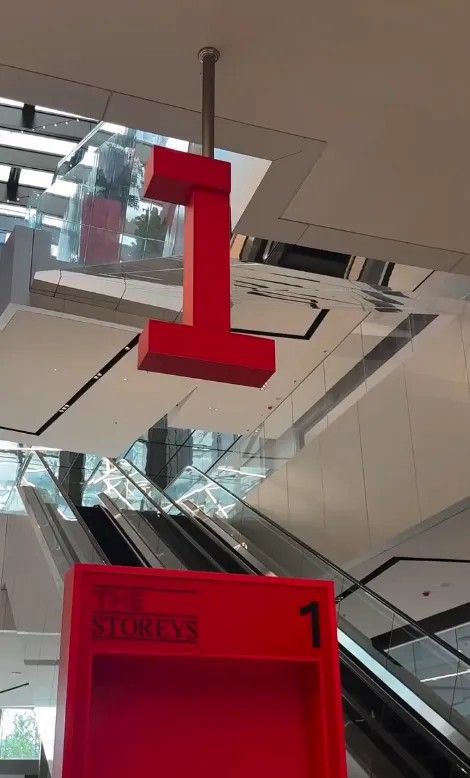 THE STOREYS的主題是“Let Your Lifestyle Tell Your Own Story(講述自己的故事)”,面積約3.5萬(wàn)平方米,強(qiáng)調(diào)“在地故事感”,主要引入具有當(dāng)?shù)匚幕瘹庀⒌臅r(shí)尚類和生活方式品牌,及一系列餐廳、酒吧等??臻g設(shè)計(jì)色彩明快,現(xiàn)代感與時(shí)尚感突出。