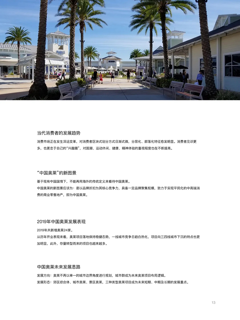 在經(jīng)濟全球化深?發(fā)展和新消費時代迅猛邁進的今天,奧特萊斯作為新零售的典型代表,仍在全球范圍內(nèi)保持著快速、穩(wěn)定發(fā)展的態(tài)勢,且已逐步拓展至休閑、健康、醫(yī)療、旅游、電子商務(wù)等多個領(lǐng)域及行業(yè),充分顯示出旺盛的?命?和?限的發(fā)展活力。