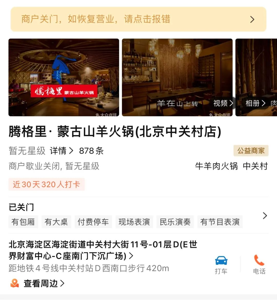 據(jù)大眾點(diǎn)評(píng)最新信息顯示,西貝餐飲集團(tuán)在北京中關(guān)村高調(diào)推出的子品牌“騰格里蒙古山羊火鍋”全國(guó)首店已歇業(yè)關(guān)閉。這家曾以現(xiàn)熬羊骨湯、內(nèi)蒙古二狼山白絨山羊肉為主打賣(mài)點(diǎn),開(kāi)業(yè)首月即登頂區(qū)域火鍋熱門(mén)榜的餐廳,在運(yùn)營(yíng)不足半年黯然退場(chǎng)。