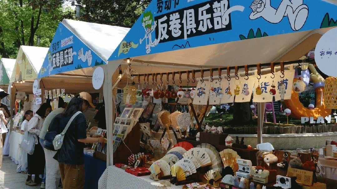除了戲劇演出,上生·新所公共空間五一期間也舉辦了以“松弛療愈”為主題的手作市集活動,60+原創(chuàng)設計攤主為大家?guī)硪粓龇淳懑熡凳屑?,向市民游客傳遞各自的“慢生活”哲學,讓我們找到都市煙火氣、找到人與人單純善意的社交,讓藝術浸潤生活,成為城市文化能量的聚集地。